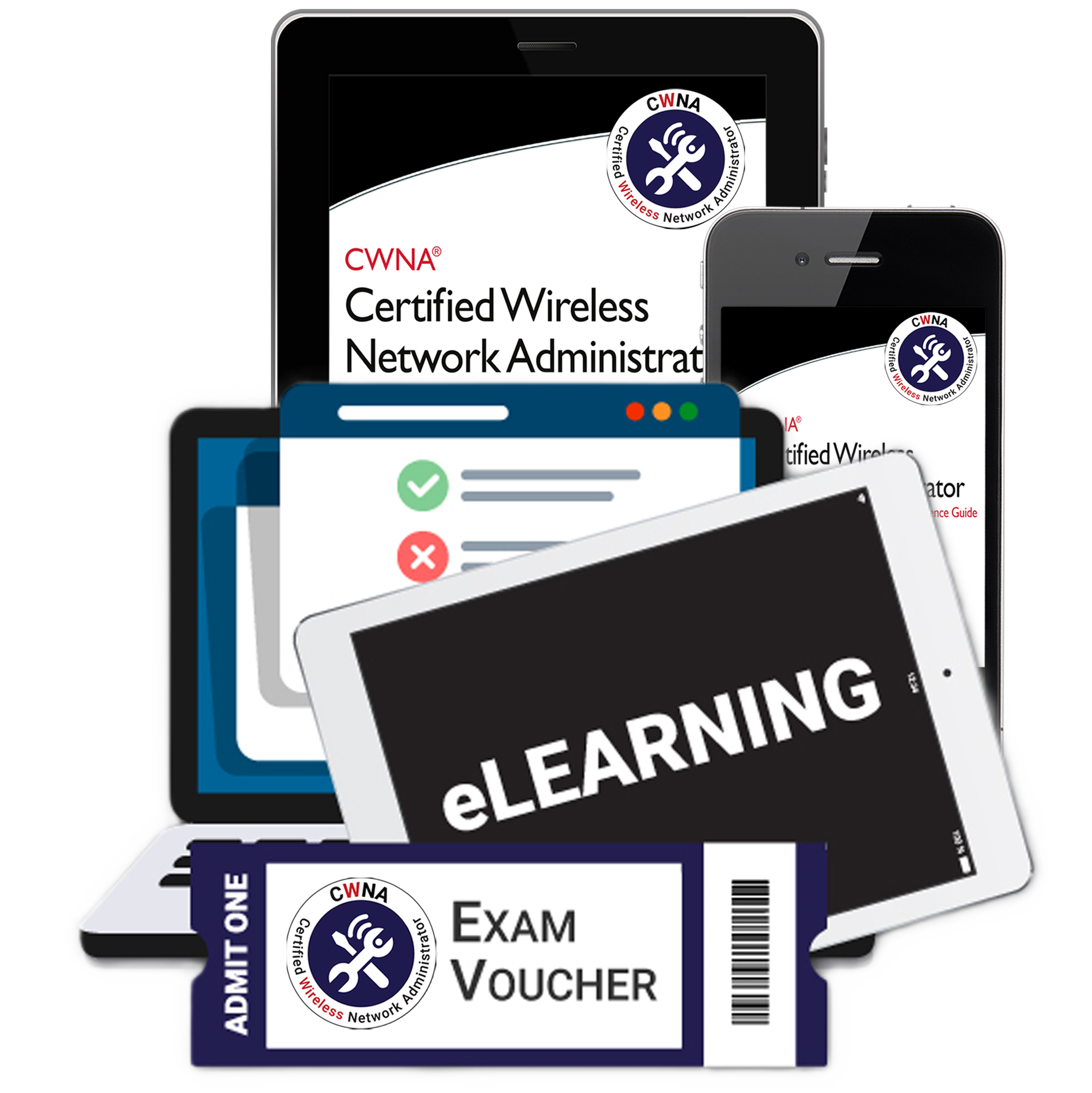 CWNA eLearning course: Unlimited access to the eLearning course, which completely covers the exam objectives. The courses include challenging post-chapter quizzes. To access the eLearning courses, log in to your CWNP account and visit My Account > CWNP Learning Center.