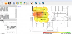 The test results are displayed on a floor plan, where each network (SSID), client, application type (data, voice, video), RF metric, and specific application receives a color-coded indicator of performance. Green is good, red is bad. The performance quality is based completely on the SLAs previously defined, not some arbitrary assessment of high and low or good and bad. In other words, WaveDeploy is designed from the ground up to identify application requirements and to measure whether a network provides those requirements. It’s a survey process that seeks to answer the question “will my network work for my applications?” by transferring actual application data. Below is a simple sample that I took with my iPhone. You can see that the HTTP download throughput hovered around the 2-4 Mbps mark in different measurement locations. This is below my target performance (5 Mbps), but just above the minimum acceptable (2 Mbps).